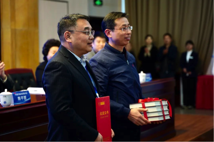 陈永斌与寿林芬签署了校企合作框架协议。越生集团经营板块总负责人兼副总编辑李相银代表集团向学校赠送了一批图书文献资料,并汇报“中国近代文学文献数据库”的建设情况。校图书馆副馆长林红志代表学校接受了捐赠,同时颁发了收藏证书。