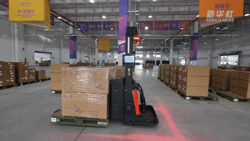 比如,大大提高运送效率的无人电叉车。