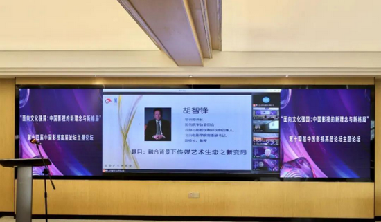 胡智锋作题为《融合背景下传媒艺术生态之新变局》的演讲;学会原副会长,教育部戏剧与影视学类教学指导委员会主任,北京师范大学教授周星作题为《中国影视高潮的创作方向:呼应时代 超越时代》的演讲;学会副会长,国家广播电视总局媒体融合发展司原司长杨杰作题为《高新视频技术与文化强国建设》的演讲;学会副会长、北京大学艺术学院教授陈旭光作题为《新主流电影的文化空间生产及其“工业美学”反思》的演讲;张国涛作题为《面向文化强国:中国影视高质量发展的机遇与路径》的演讲。