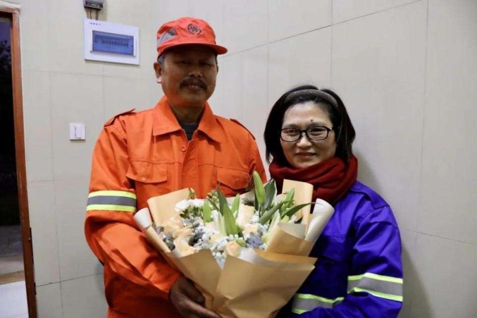 洒水车驾驶员魏国明和公厕保洁员高茶仙携手相伴30年,一直是环卫大家庭里的模范夫妻,当得知还有4天就是高茶仙的生日,“学霸宅一族”的同学和魏国明一起为她准备了生日礼物和鲜花。