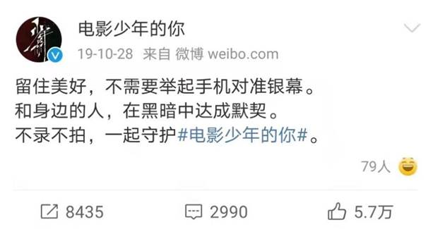 我们反对的,是破坏影视产业健康发展的侵权行为,而非把所有观众都划分到演员、片方的对立面。反对屏摄,用谨慎且温和的方式进行宣传普及,唤醒观众的文明观影意识,同时向公众普及版权意识,当大众拥有了共同认知,侵权行为被抵制,所有可能会诱导侵权行为发生的现象自然会逐渐消退,甚至进一步由道德层面转向法律层面,使法律因为舆论的产生而完善化。