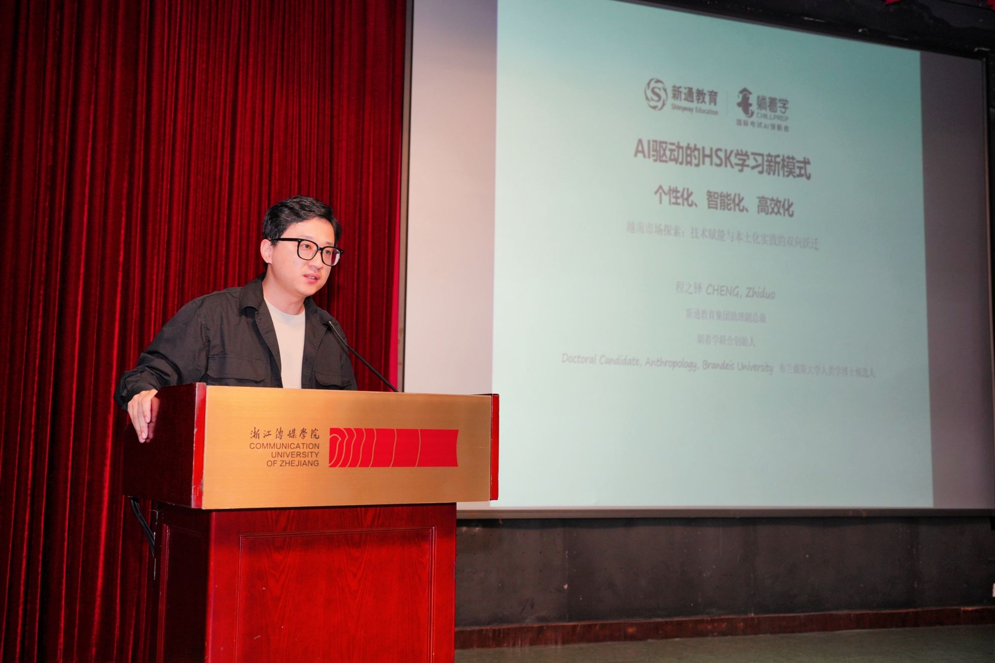 校党委委员、宣传部(教师工作部)部长孙保胜致辞,他阐述了人工智能对国际中文教育模式与生态的重塑作用,表明杭州在人工智能领域的优势及本次论坛对跨学科合作的意义。研究生院(研究生工作部)负责人表示,人工智能为国际中文教育带来机遇,研究生论坛是成果展示与实践平台,鼓励学子积极交流、恪守学术道德。