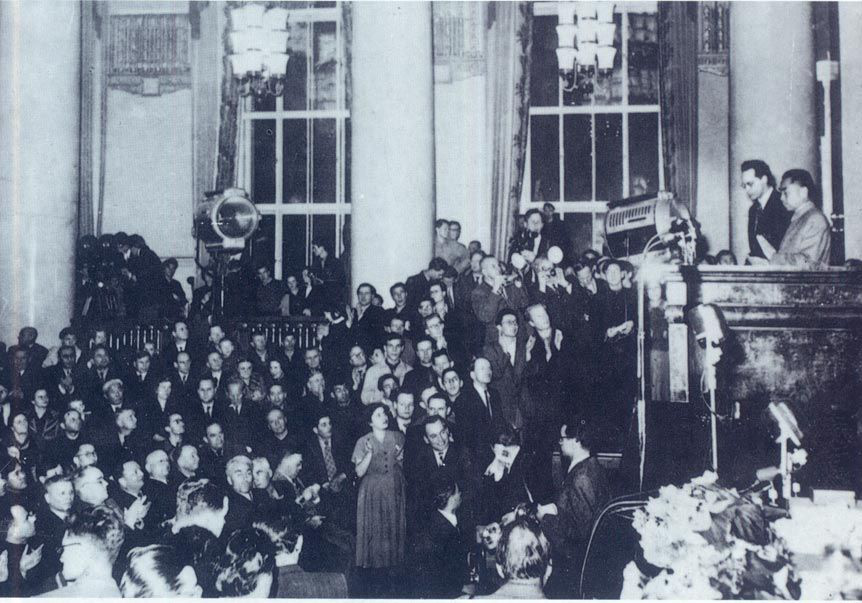 1957年1月7日至11日,周恩来访问苏联时在莫斯科大学发表讲话。