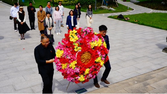 全体党员集体瞻仰桐乡烈士纪念碑,并向纪念碑敬献花圈。