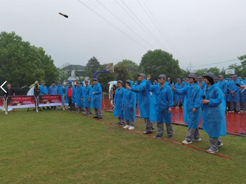 在神枪手比赛中,枪杆绑着重重的砖头,队员们努力保持平衡、瞄准靶心。丝毫不受天气影响。