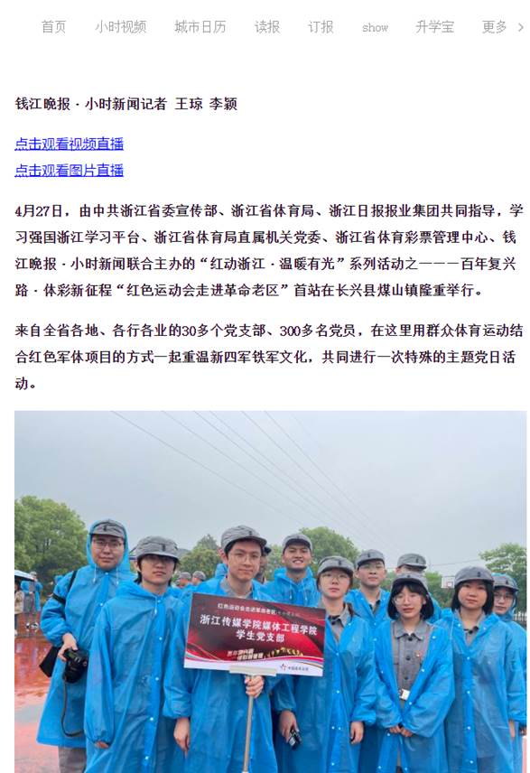 4月27日,由中共浙江省委宣传部、浙江省体育局、浙江日报报业集团共同指导,学习强国浙江学习平台、浙江省体育局直属机关党委、浙江省体育彩票管理中心、钱江晚报·小时新闻联合主办的“红动浙江·温暖有光”系列活动之一——百年复兴路·体彩新征程“红色运动会走进革命老区”首站在长兴县煤山镇隆重举行。