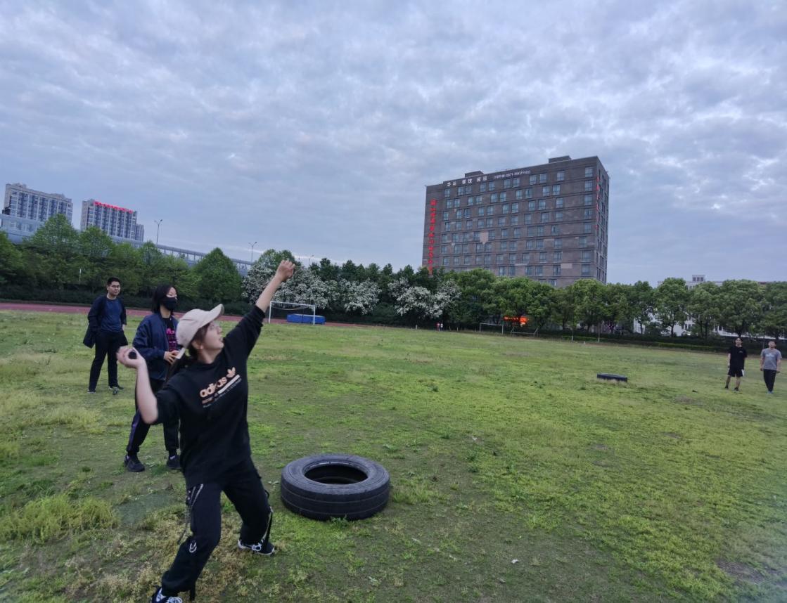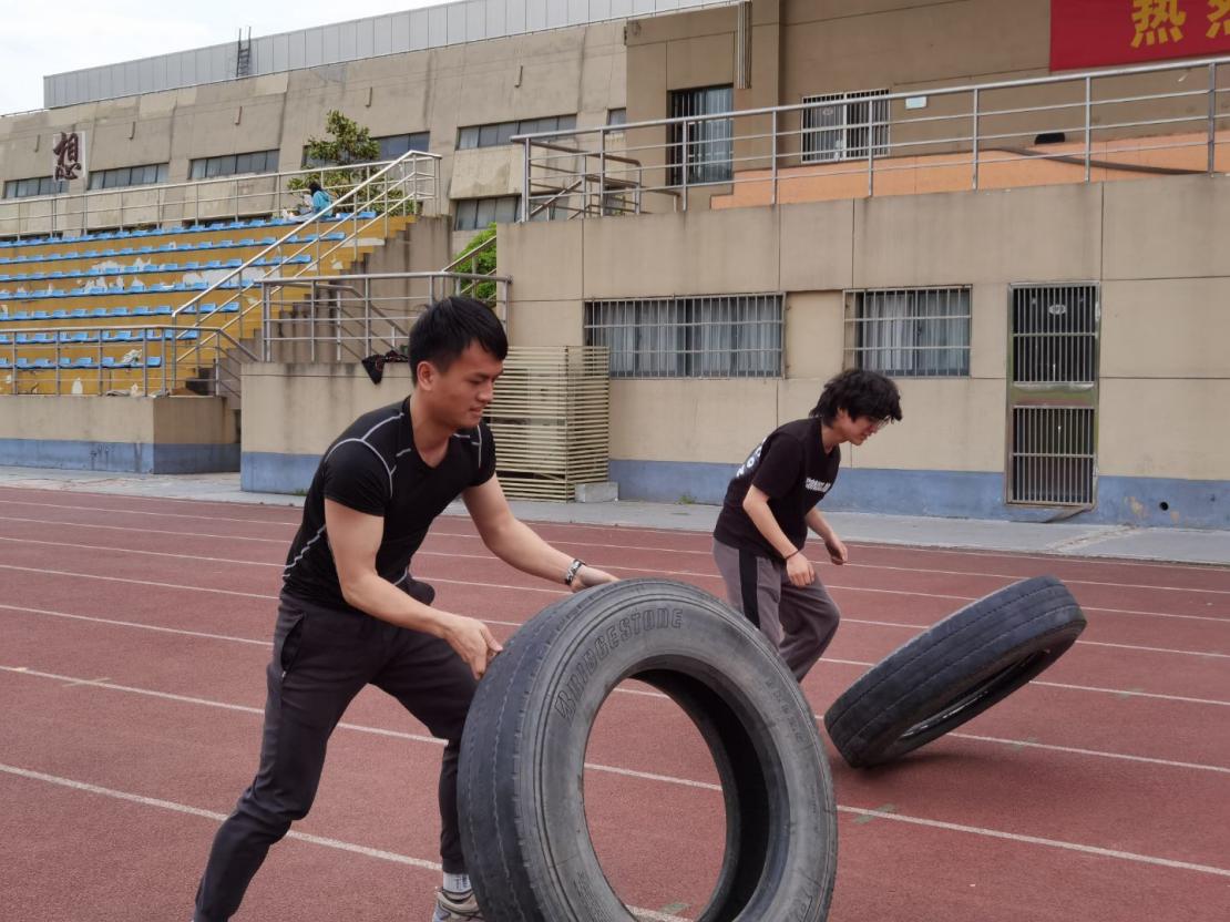 比赛开始之前之前,学生们踊跃报名,热情高涨,自行组织了投掷手榴弹、滚轮胎等准备训练项目。