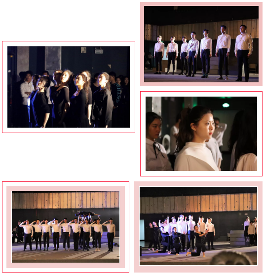大家在没有表演服装,没有舞台灯光的情况下,仍然用自己的肢体,用自己的语言演绎出惊心动魄的历史故事,呈现出震撼的舞台效果。这足以体现出我院师生一直以来在台下付出的努力和汗水。