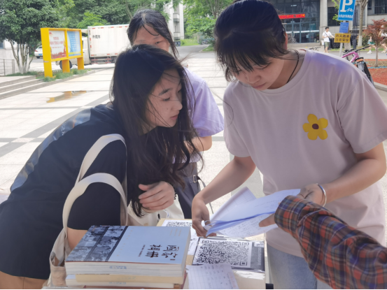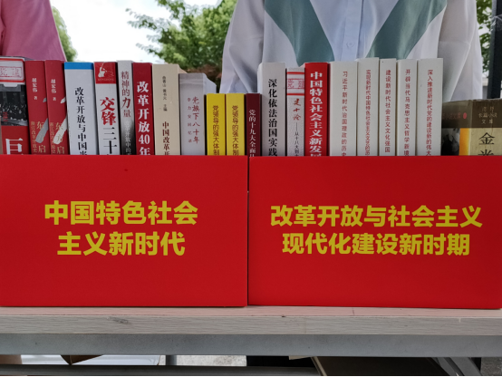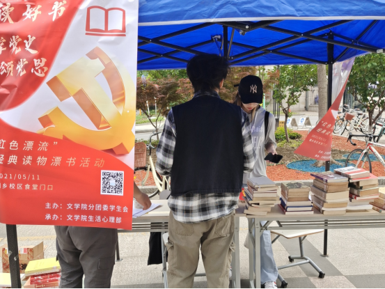 5月11日,漂书活动在学校生活区门口进行。现场分享了100本红色经典读物,分别反映了新民主主义革命时期(1921-1949年)、社会主义革命和建设时期(1949-1978年)、改革开放与社会主义现代化建设新时期(1978-2012年)、中国特色社会主义新时代(2012年至今)四个时期的历史脉络和厚重底蕴,供全校师生自由借阅。