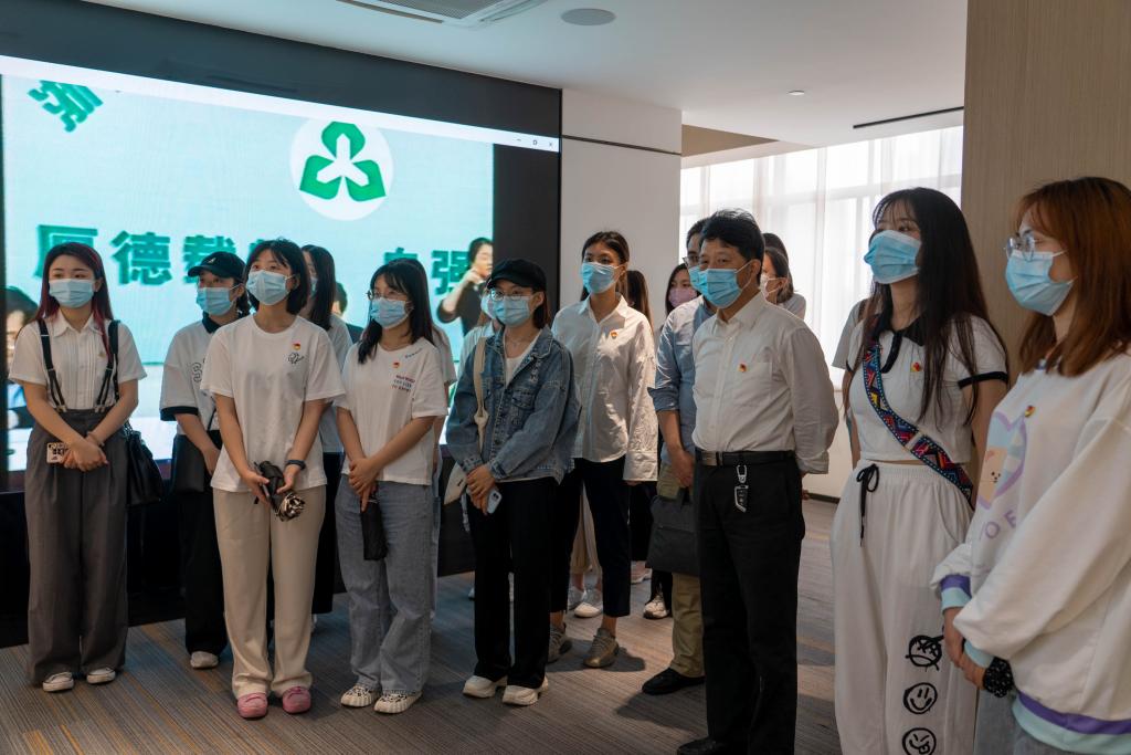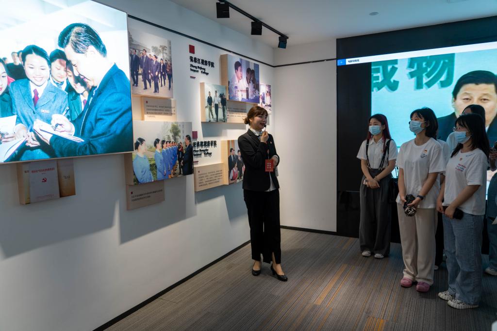 在志愿者引导下,师生党员们一行参观访问了位于校区内部的钱塘区红色基地,仔细聆听工作人员的讲解,重温中共中央总书记,时任浙江省委书记习近平于2003年视察育英职业技术学院时的讲话精神。师生们不时驻足观看,相互交流,重温讲话精神,赓续红色血脉。