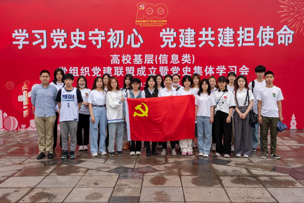 为庆祝中国共产党建党百年,深入开展党史学习教育活动,实现在杭高校基层(信息类)党组织间的互帮互助互学,促进合作共建,进一步发挥和拓展党建的统领推动作用。5月22日,由学院党委书记姜武带领,学院组织员、网工学生党支部书记李林青、广电学生党支部书记陈晨及25名学生党员赴浙江育英职业技术学院参加“在杭高校部分高校基层(信息类)党组织党建联盟成立暨党史集体学习会”活动。
