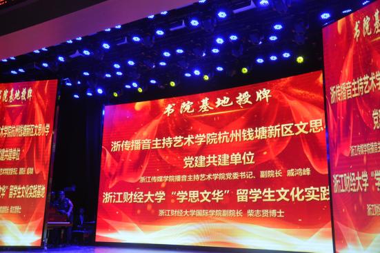 来自中国美术学院、杭州教育科学院等高校科研机构的领导和专家,区宣传部、教委局、街道等相关职能科室领导们出席会议。播音主持艺术学院党委书记戚鸿峰应邀参加会议并授牌。我院18级礼仪2班李丞博、朱柏影和文思小学教师一起主持了活动。