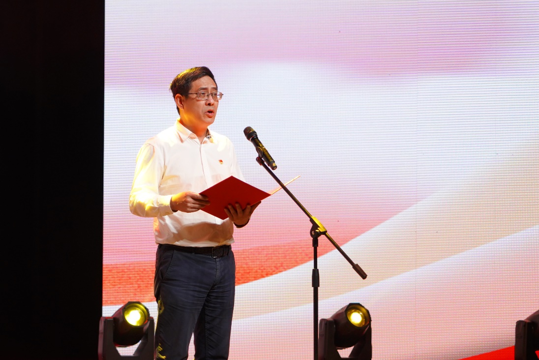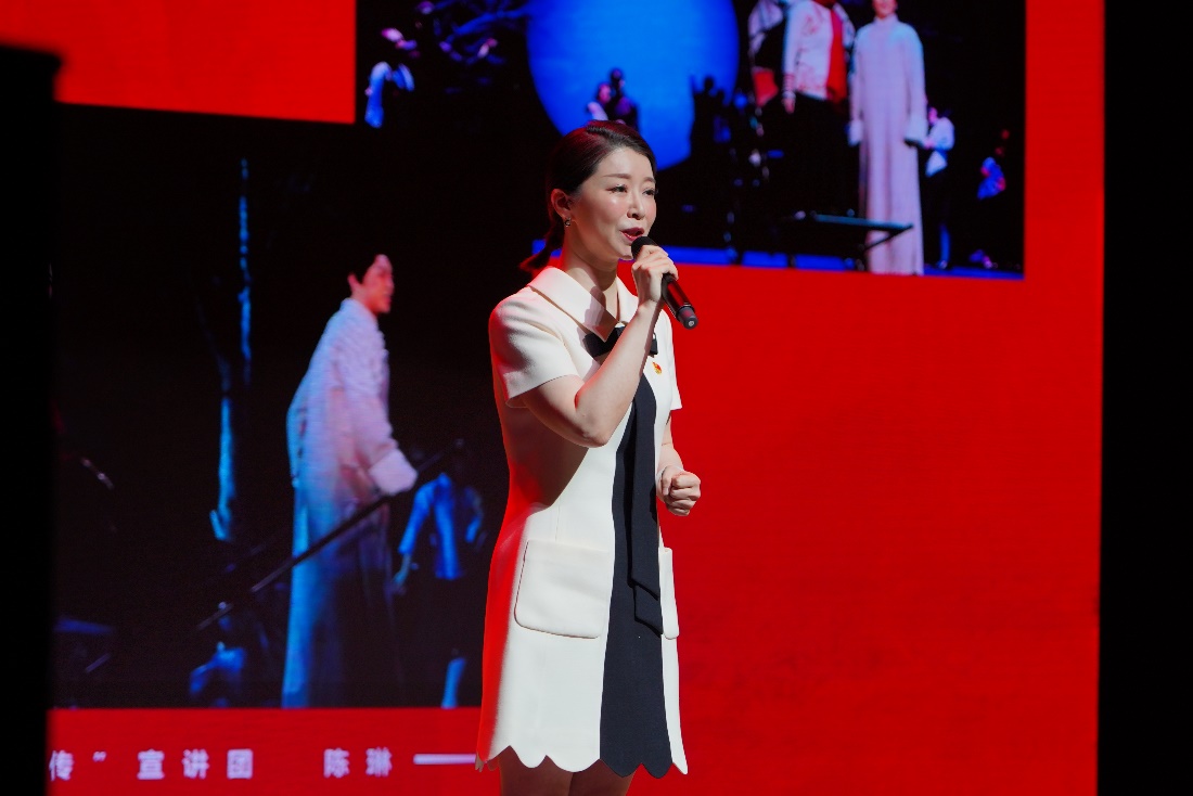 陈琳作题为《从舞台到讲台穿越百年赓续血脉》的宣讲。她以出演国家艺术基金重大资助项目音乐剧《红船往事》主角杨开慧的经历为例,通过一幕幕视频片段和剧照讲述杨开慧身上所体现出的“红船精神”,鼓励每一位师生坚定首创的信念,坚持奋斗的执着,拥有奉献的情怀,以不凡业绩致敬中国共产党百年辉煌!
