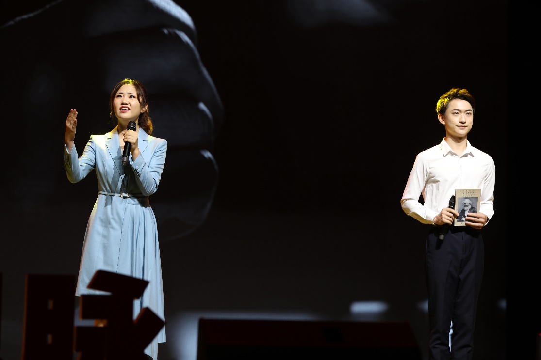 于佳辰和郭兴超以《望道》为题向大家讲述了陈望道翻译《共产党宣言》的故事,号召青年一代传承陈望道开拓创新的首创精神、不畏艰苦的专注品质、将小我融入时代大潮的奉献精神,用青春召唤青春,用理想照耀中国!