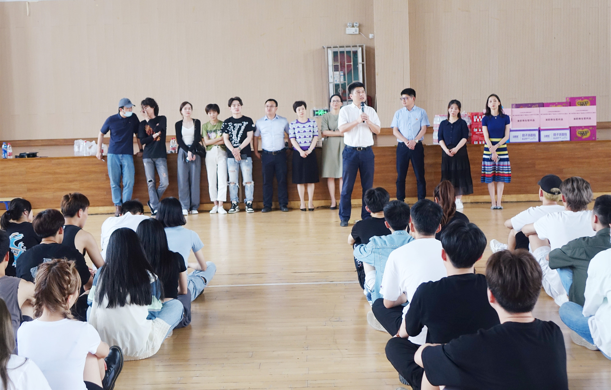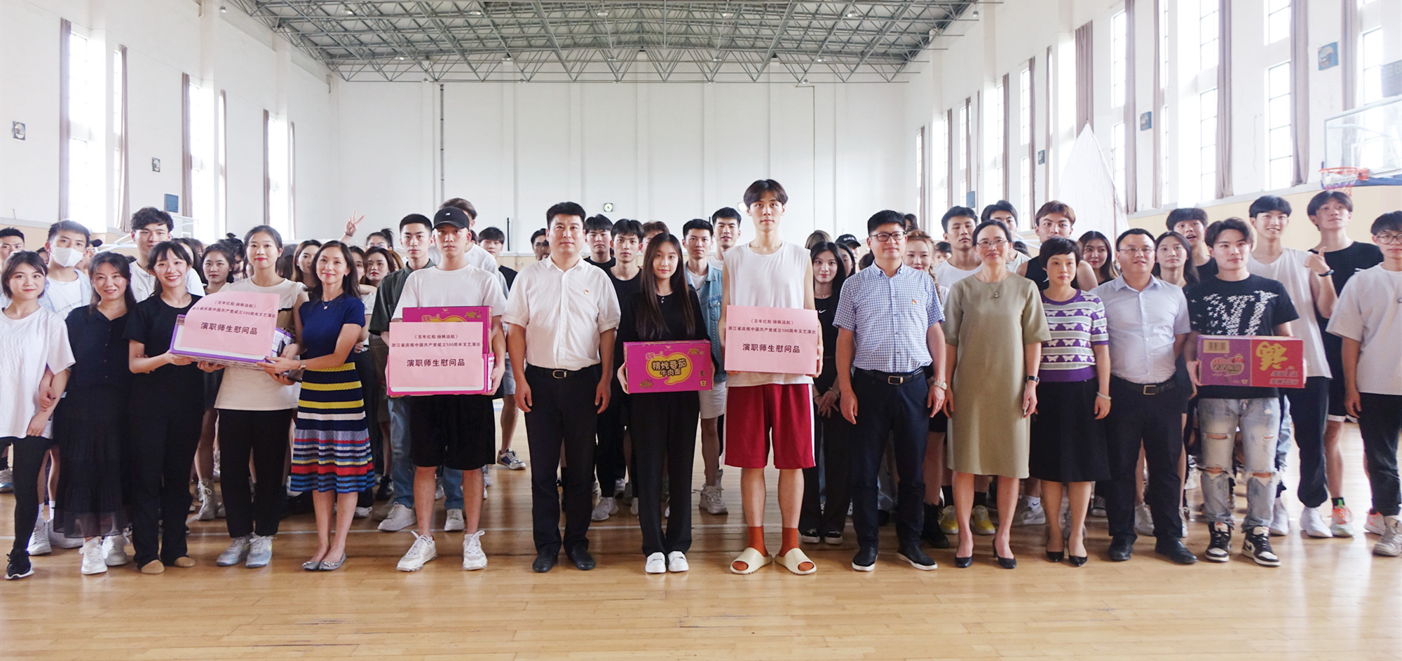 陈永斌来到排练现场慰问演出团队并送上慰问品,充分肯定了剧组成员的辛苦付出,对师生不畏炎夏加紧排练表示衷心感谢。他表示,此次建党百年节目排练本身就是一堂生动的党史课,他希望剧组成员以昂扬的状态、饱满的精神,充分展现浙传风貌,努力打造精品佳作。