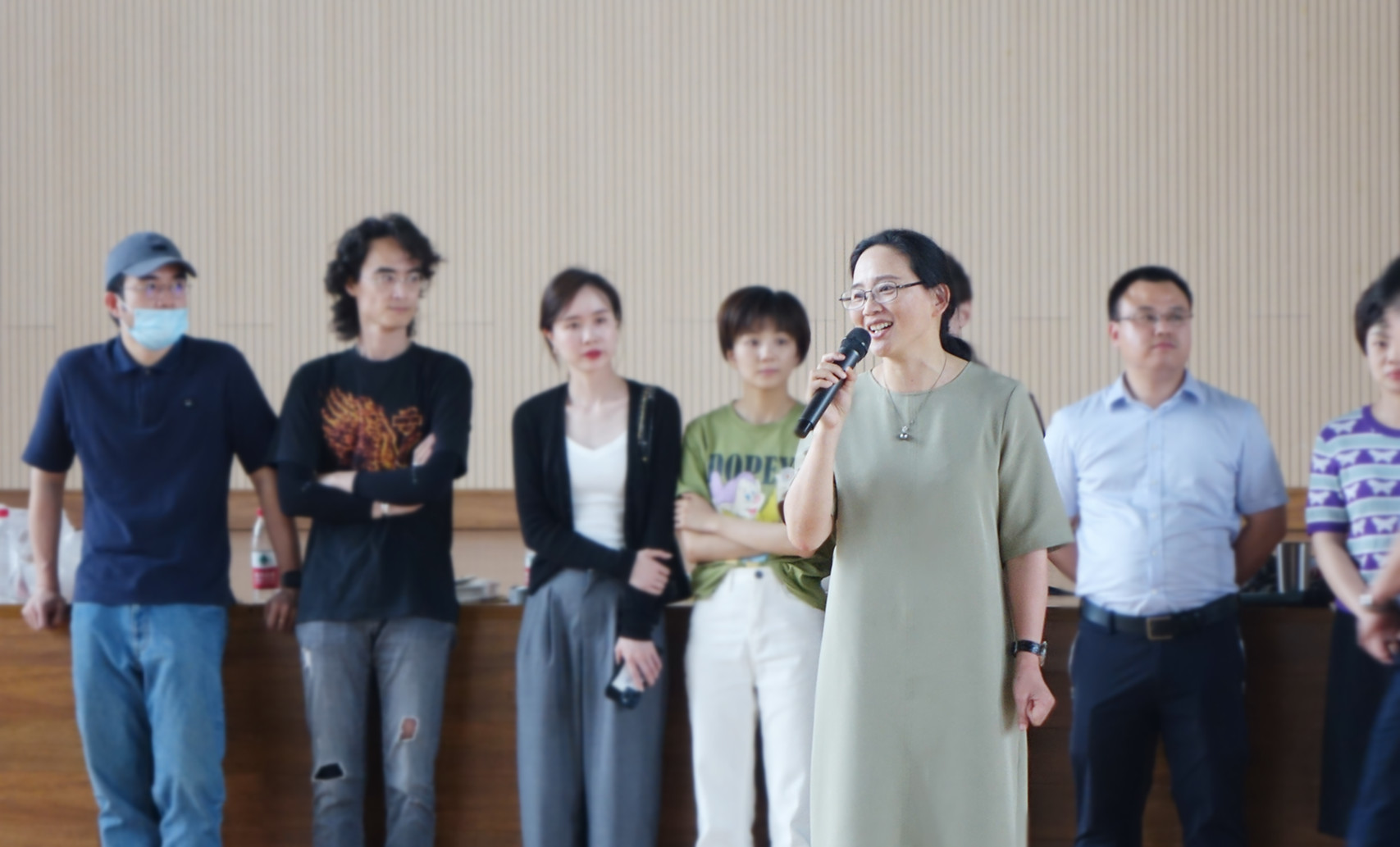 华策电影学院副院长陈斌为参与排练的师生加油鼓劲,她指出,这次抽调精兵强将参与节目排演,是一次难得的试炼机会,尤其对于表演专业的学生更是一次直面观众、培养舞台自信的绝佳机会,希望同学们精益求精,确保高标准、高质量完成演出。