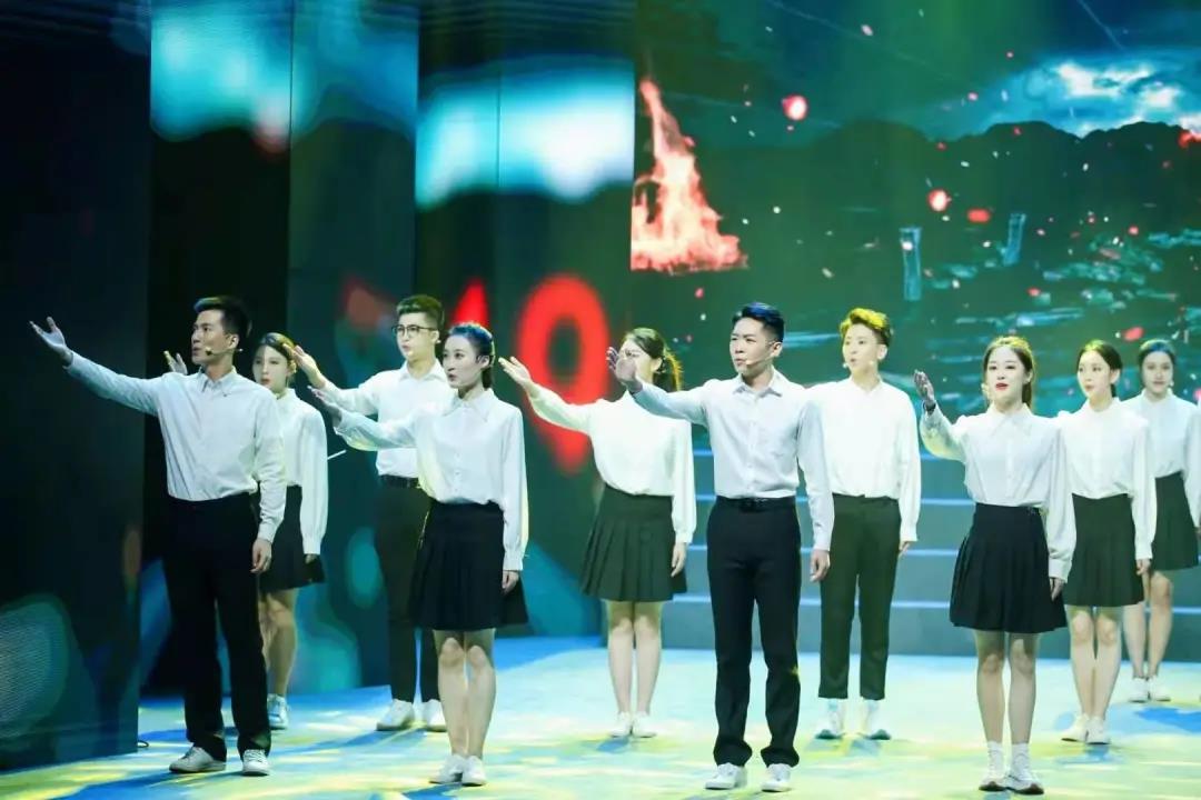由播音主持艺术学院百余名师生带来的大型音诗画舞台剧《百年追寻》上演。舞台剧分《火种》《曙光》《启程》《逐梦》四个篇章徐徐展开,带领大家领略了中国共产党波澜壮阔的百年征程,感受历久弥坚的百年初心。
