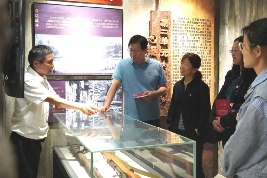 在中国工农红军挺进师纪念馆内,党支部党员代表一行在珍贵的史料前驻足端详,仔细听取介绍,深入了解当年刘英、粟裕等革命前辈在艰苦环境下浴血奋战的故事。纪念馆中珍藏着战斗中使用的“贡铳”、电台、枪支等,真实地还原了挺进师在浙南游击抗战的奋斗历史。一幅幅图片、一段段史料、一件件实物带领我院教师党员们穿越时空,回到那段战火连天的岁月,让大家对泰顺的红色根脉和革命斗争史感到由衷的敬仰。