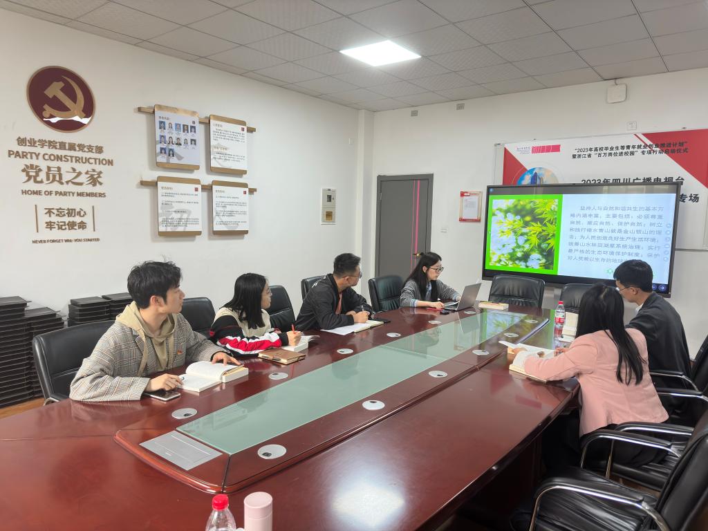 微党课后,创业学院直属党支部全体成员进行主题教育集中自学。