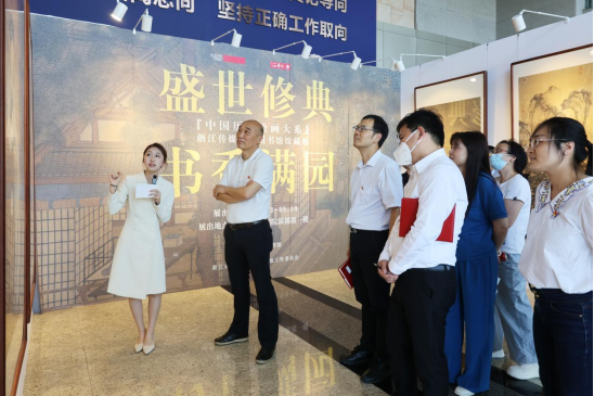 最后,党员同志们在演播楼一楼大厅观摩《中国历代绘画大系》伟德官网bv1946图书馆馆藏展览。“中国历代绘画大系”是2005年习近平同志亲自批准,多年来一直高度重视、持续关注,并多次作出重要批示的一项规模浩大、纵贯历史、横跨中外的国家级重大文化工程。这次展览展出了许多能够反映中国传统文化与思想传承的优秀作品。