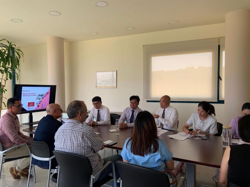 在西班牙埃尔切市米盖尔·埃尔南德斯大学,代表团与该校副校长Alberto Rodríguez Martínez及国际交流部门负责人洽谈交流,相互了解课程设置、特色优势专业等情况,并就科研合作平台建设、师生校际交流等合作细节交换了意见。