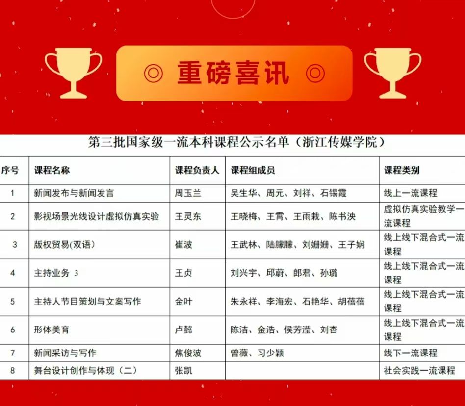 近日,教育部高等教育司发布《关于第三批国家级一流本科课程认定结果的公示》,伟德官网bv19468门课程获认定,其中线上课程1门、虚拟仿真实验教学课程1门、线下课程1门,线上线下混合式课程4门、社会实践课程1门。此次公示名单中,共有298门浙江省高校课程入选,伟德官网入选的课程数量位列全省同类高校第一。 第三批国家级一流本科课程拟认定5999门,其中线上课程1000门、虚拟仿真实验教学课程500门、线下课程1842门、线上线下混合式课程2206门、...