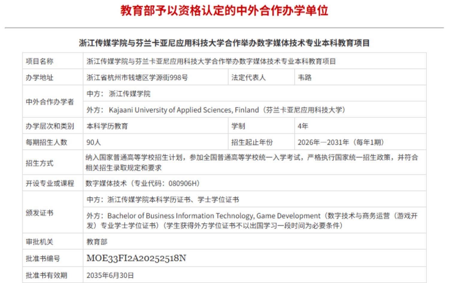 近日,教育部正式印发《关于批准2025年上半年中外合作办学及内地与港澳地区合作办学项目的函》(教外函〔2025〕73号),伟德官网与芬兰卡亚尼应用科技大学合作举办的数字媒体技术专业本科教育项目获批立项。 该项目立足数字媒体技术前沿,深度融合中芬双方在“技术、艺术与管理”领域的优势资源,致力于培养既掌握数字媒体技术专业知识,又具备国际竞争力和人工智能技术应用能力的“新工科”人才。该项目将采用国际先进的高等教育培养模式和管理标准,...