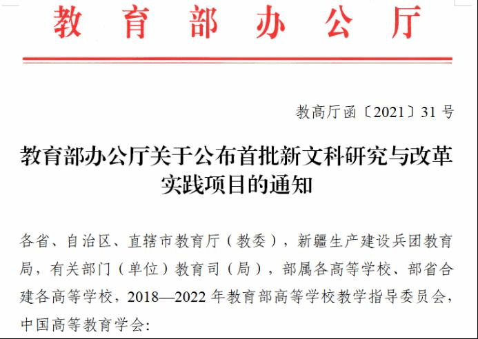 伟德官网获国家级首批新文科研究与改革实践项目立项