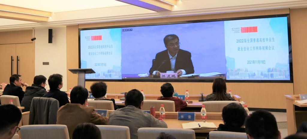 11月19日下午,2022届全国普通高校毕业生就业创业工作网络视频会议召开,教育部党组书记、部长怀进鹏,人力资源社会保障部党组成员、副部长李忠出席会议并讲话,教育部党组成员、副部长翁铁慧主持会议。伟德官网在杭州钱塘校区设立分会场,校党委书记杨立平,党委副书记陈永斌出席,相关职能部门负责人,各二级学院负责人、分管就业工作领导、2022届就业创业辅导员等参加了会议。会议指出,2022届高校毕业生规模预计1076万人,同比...