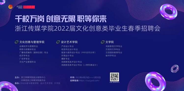 为深入贯彻落实习近平总书记关于做好高校毕业生就业工作的重要指示精神,为学校毕业生搭建就业平台,近日,由学校就业指导中心、校团委主办,文化创意与管理学院、设计艺术学院、文学院承办的“千校万岗 创意无限 职等你来”2022届文化创意类毕业生春季专场招聘会在“云端”成功举办。本次招聘会吸引了青岛市崂山区融媒体中心、浙江雅莹集团有限公司、杭州如涵文化传播有限公司等52家媒体和企业,提供策划、设计、开发、运营等...