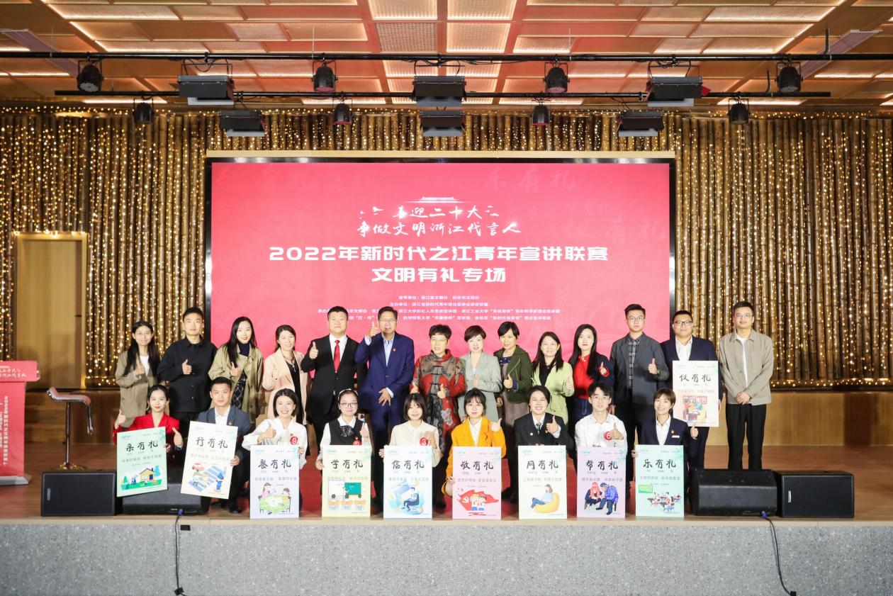 “喜迎二十大,争做文明浙江代言人。”在党的二十大召开之际,为深入学习贯彻习近平新时代中国特色社会主义思想,引领广大高校青年宣讲员投身省第十五次党代会精神和党的二十大精神宣讲活动,近日,2022年新时代之江青年宣讲联赛首场活动在杭州市余杭区百丈镇举行。活动通过宣讲文明浙江故事传播“务实、守信、崇学、向善”的价值追求,助力培育“浙江有礼”省域品牌。本次活动由浙江省委宣传部指导,由浙江省新时代青年理论志...