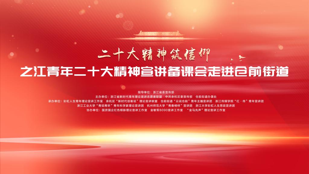 为学习贯彻党的二十大精神,准确解读好、诠释好、理解好党的二十大精神的实质,10月27日,之江青年党的二十大精神宣讲备课会在余杭区仓前街道举办。本次活动在浙江省委宣传部理论处的指导下,由浙江省新时代青年理论宣讲志愿者联盟、中共余杭区委宣传部、仓前街道办事处主办,彩虹人生青年理论宣讲工作室、余杭区“新时代创客说”理论宣讲联盟、仓前街道“云说仓前”青年主播宣讲团、伟德官网bv1946“红·传”青年宣讲团、浙江工...