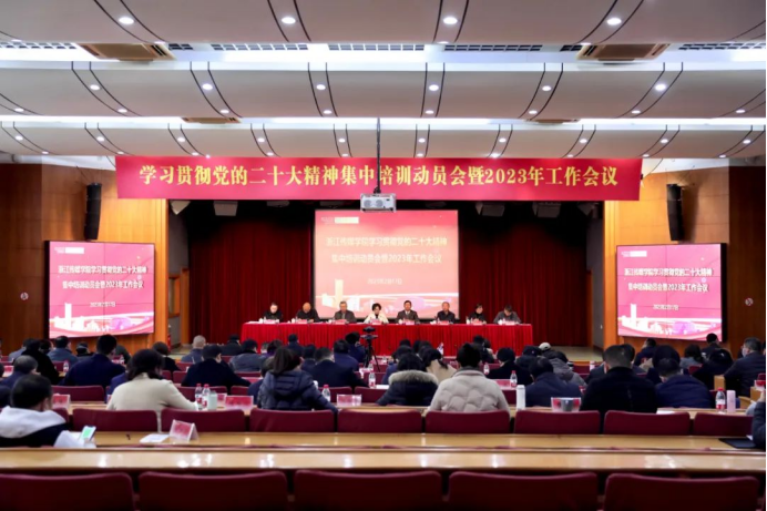 2月17日上午,伟德官网召开学习贯彻党的二十大精神集中培训动员会暨2023年工作会议。校党委书记杨立平发表讲话,校长徐小洲主持会议。副校长姚争、张梁,党委副书记徐伟标,副校长李文冰,纪委书记张伟波,党委副书记陈永斌以及中层干部、高级专业技术职务人员代表、民主党派负责人、教代会执委会成员参加现场会议,全体主管参加视频会议。 杨立平在讲话中指出,本次工作会议,既是党的二十大精神学习培训会,也是新一年的工作部署会...