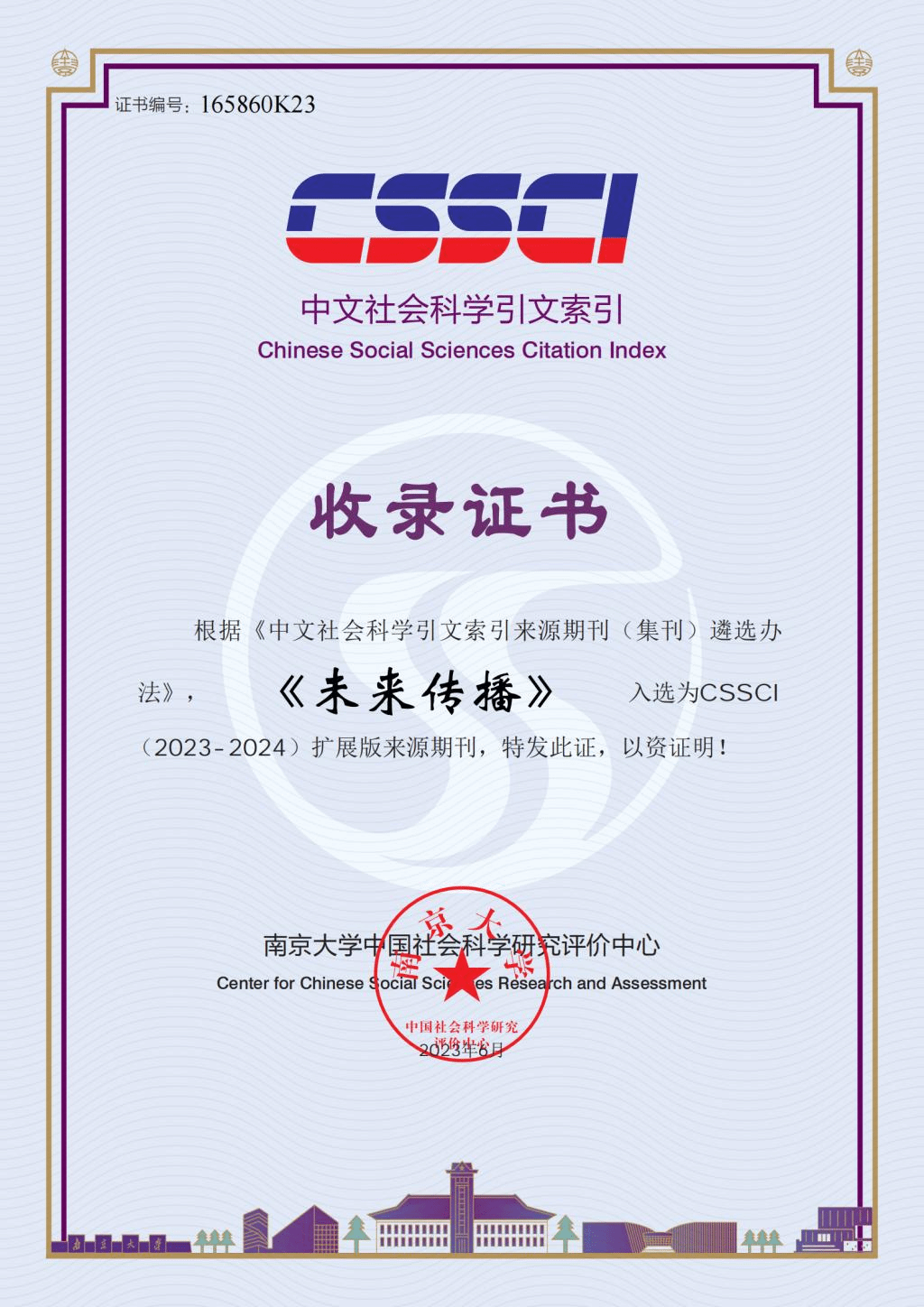 喜报:《未来传播》再度入选中文社会科学引文索引(CSSCI) 扩展版来源期刊