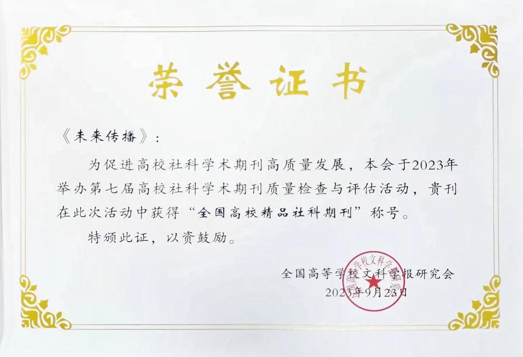 喜报:《未来传播》获“全国高校精品社科期刊”称号