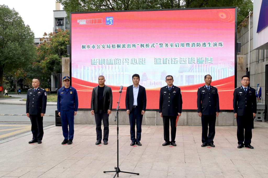 桐乡市公安局梧桐派出所“枫桥式”警务室启用仪式暨消防逃生演练举行