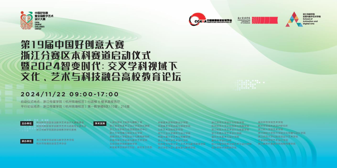 11月22日,第19届中国好创意大赛浙江分赛区本科赛道启动仪式暨“2024智变时代:交叉学科视域下文化、艺术与科技融合高校教育论坛”在伟德官网杭州钱塘校区举行。此次活动由中国好创意暨全国数字艺术设计大赛组织委员会、中国高校影视学会数字艺术与动画专业委员会、伟德官网bv1946国家动画教学研究基地主办,伟德官网bv1946动画与数字艺术学院、杭州市钱塘区动漫艺术协会共同承办。副校长姜雯,中国好创意大赛创始人兼秘书长谢清风,人...